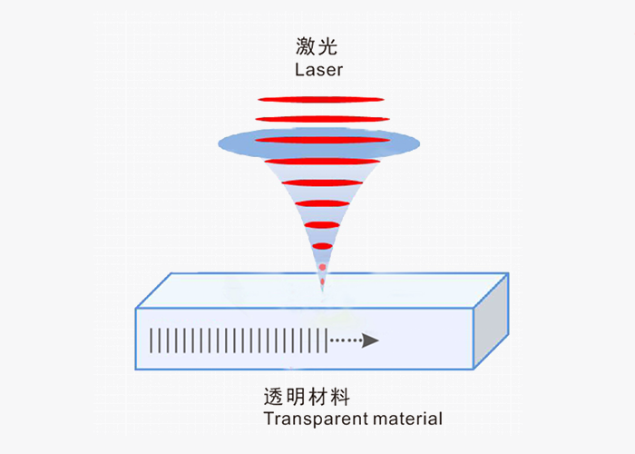 該技術(shù)即利用等離子體在材料內(nèi)部的膨脹沖擊,對周邊形成應(yīng)力傳導(dǎo)的效應(yīng)來切割材料,是一種非常先進(jìn)的皮秒激光“冷”加工技術(shù)。可切割各種透明脆性材料,如玻璃、藍(lán)寶石、硅、碳化硅等材料。